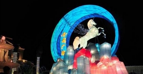 Various horse-themed colored lights are presented at the festival.