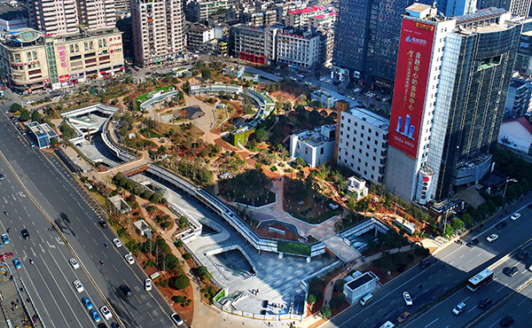 On December 19, 2017, the Changsha Wuyi Square’s green leisure landscape has been open to the public, and the construction of underground shopping mall is to be completed. (Photo/GuoLiliang)