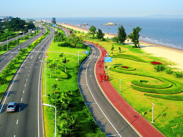 The road starts from the Xiamen oldest ferry terminal, Lendu Ferry Terminal, passing by Yanwu Bridge, historic Hulishan Fort (built in 1891 during the Qing Dynasty (1636-1911)), Zengcuo’an, and parks, such as Calligraphy Square and Music Square where you will find sculpture, Xiamen International Convention and Exhibition Center, Wuyuan Bay and the airport, which is 31 kilometers long in total.