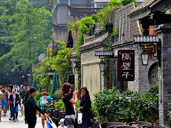 The feature of the Zhai Alley in Chengdu is the leisure lifestyle. After the renovation in 2008, Zhai Alley has became a district to present the gardening culture of Chengdu. The gardening culture here shows a traditional and graceful culture of Chengdu, that is a family has a garden, a garden surrounds a house, a house contains a courtyard, a courtyard plans trees, trees are under the sky, the sky has the moon… In Zhai Alley, western restaurants, take-away inn, café, art and leisure workshop are the major factors.