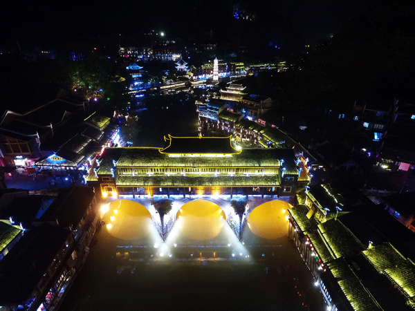 The 21-meter tall Wanming Tower stands at the foot of Qinglong Mountain, on the north bank of the Tuojiang River.